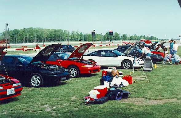 '95 DSM ShootoutThe Third Annual DSM Shootout was held on May 26th, 1995, at the Norwalk Raceway in Norwalk, OH. It was TOO cool! There were at least 30 DSM machines there, all were fast and schweet. Here's a picture of one of the many lineups that took place that day.